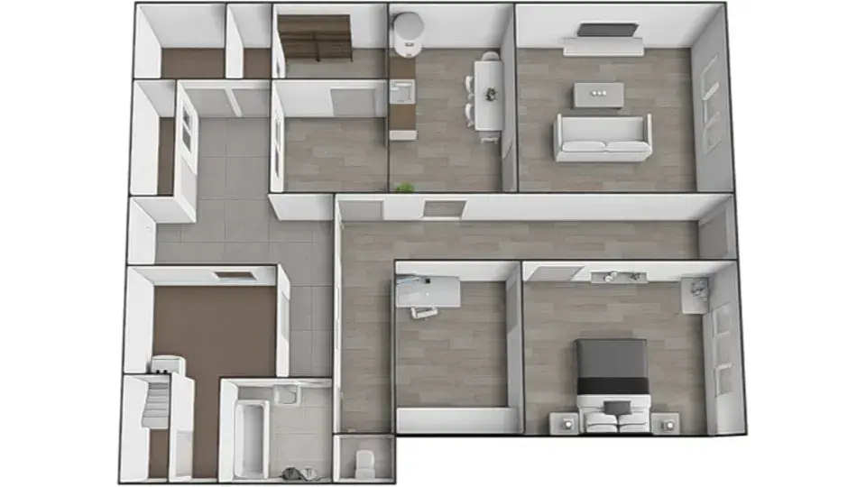 Vstupními dveřmi vejdeme do prostorné chodby o celkové ploše cca 15,1 m2, která propojuje hlavní obytné části domu. Po levé straně se nachází pokoj o výměře cca 16,46 m2, který může sloužit jako obývací pokoj či ložnice. Z tohoto pokoje je vstup do další místnosti o ploše cca 10,14 m2, vhodné jako ložnice, dětský pokoj, šatna nebo pracovna. Z již zmíněné chodby je dále přístup do kuchyně o rozloze cca 9,46 m2, kde je zároveň umístěn ohřev teplé vody. Z kuchyně vejdeme do prostorného pokoje o velikosti cca 22,43 m2, který lze využít jako hlavní obývací pokoj či další ložnici. Z kuchyně je také přístup do menší místnosti o celkové ploše cca 8,02 m2, jež může sloužit jako samostatná jídelna. Z této místnosti je vstup do komory o celkové ploše cca 4,36 m2 z níž je dále přístup do sklepa o stejné výměře. Zároveň je z této místnosti umožněn návrat do hlavní chodby, což zajišťuje přehledné a praktické dispoziční řešení. Chodba pokračuje ke koupelně o celkové ploše cca 3,81 m2 a samostatnému WC o celkové ploše cca 1,07 m2. Z chodby je vstup na soukromý dvůr, odkud se vchází do jednotlivých nebytových prostor. Z dvoru je přístup na půdu nad domem o výměře cca 68,52m2, která přímo vybízí k půdní nástavbě. Nachází se zde komora o rozloze cca 7,55 m2, ze které vedou schody do sklepa o celkové ploše cca 5,76 m2. Na dvoře jsou dále tři menší nebytové prostory o celkových plochách cca 5,13 m2, 4,78 m2 a 2,59 m2. Ze dvora je po úpravách možné, jak je výše již uvedeno vytvořit místo pro relaxaci a odpočinek.