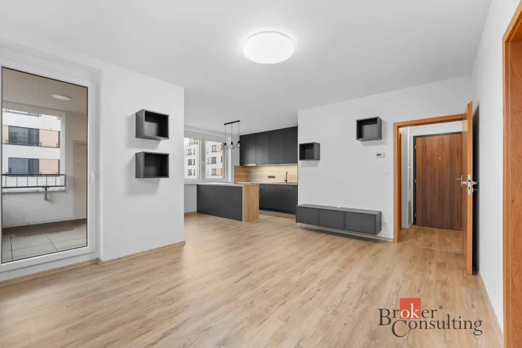 Byt zaujme světlým obývacím prostorem se vstupem na balkon. Součástí je kvalitní vestavěná kuchyňská linka se spotřebiči a v ložnici praktická vestavěná skříň s dostatkem úložného prostoru.