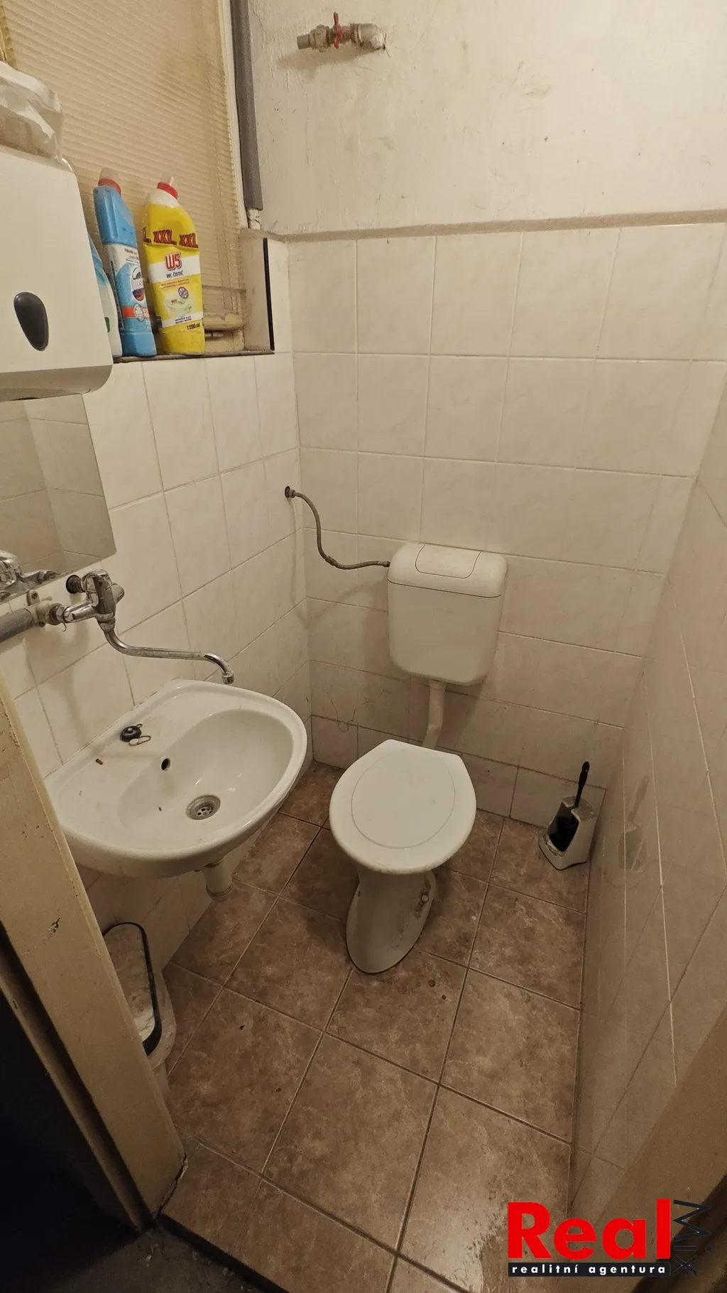 Dispozice: hlavní prostor s výlohou 15m2 vč. zázemí s malou kuchyňkou, WC mimo prostory v suterénu příslušného domu.
