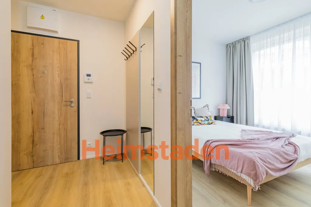 Byt o dispozici 2+kk se skládá z prostorného obývacího pokoje s kuchyňským koutem, samostatné ložnice, předsíně, komory a koupelny s WC. Velkým benefitem je balkon orientovaný do klidného vnitrobloku, ideální pro ranní kávu nebo večerní relax. Interiér je vkusně a prakticky zařízen, nechybí moderní kuchyňská linka s vestavěnými spotřebiči včetně myčky, trouby, indukční varné desky, lednice s mrazákem, dále rozkládací pohovka, jídelní stůl, postel, vestavěné skříně ani pračka. Byt nabízí dostatek úložného prostoru a je připraven k okamžitému nastěhování. Součástí nájmu je také jedno garážové parkovací stání. Elektřina a internet budou převedeny na nájemce.