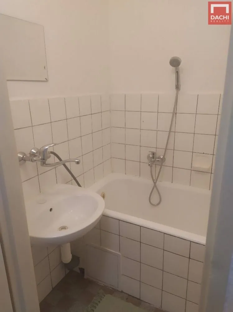 Koupelna je vybavena vanou a umyvadlem, toaleta je oddělená. V předsíni se nachází šatní stěna s dostatkem úložného prostoru.