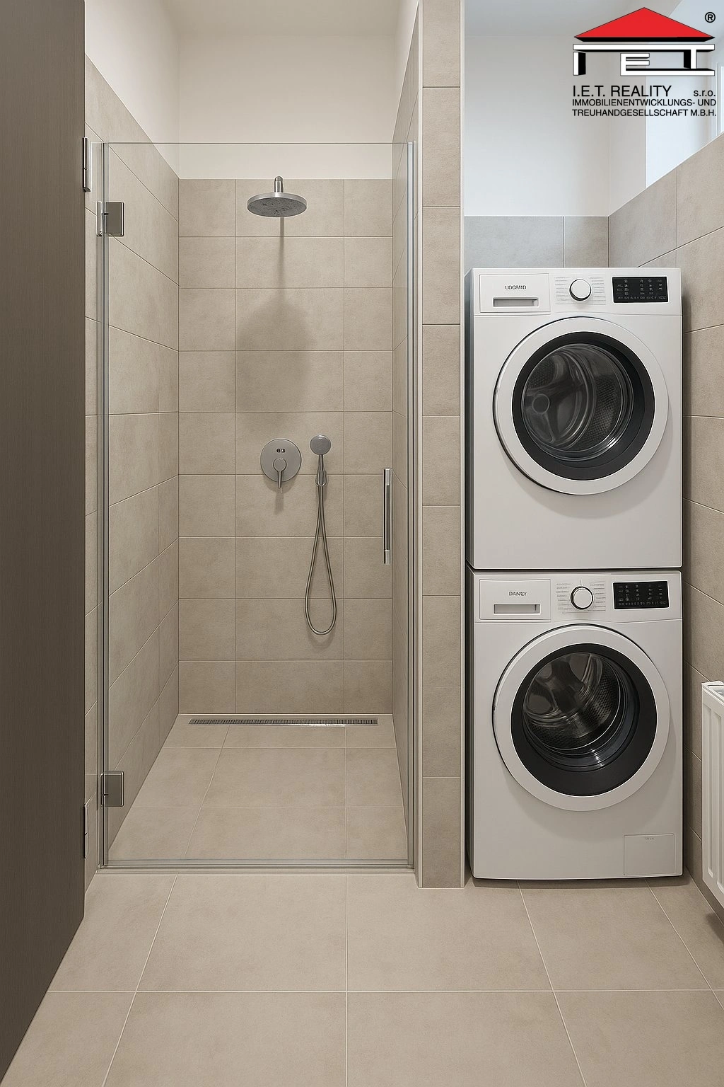 Fotografie v inzerátu jsou vizualizace, které ukazují, jak může prostor po zařízení vypadat – pračka, sušička ani nábytek nejsou součástí pronájmu.