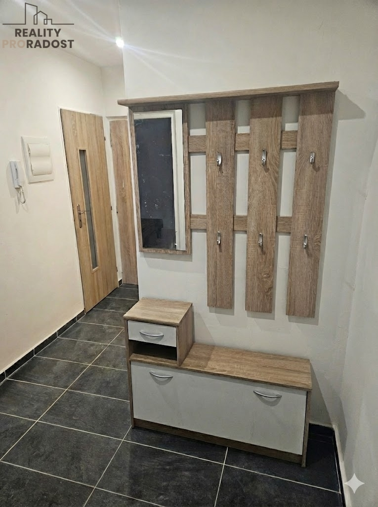 Bytová jednotka se skládá z chodby s komorou, kuchyně s linkou, lednicí a pračkou, obývací místnosti s lodžií, ložnicí, koupelny s vanou a samostatné WC. Celý byt je nově vymalovaný. Majitel má právo vlastního výběru nového nájemníka. Pro dlouhodobý podnájem se preferuje slušný pracující nájemník.