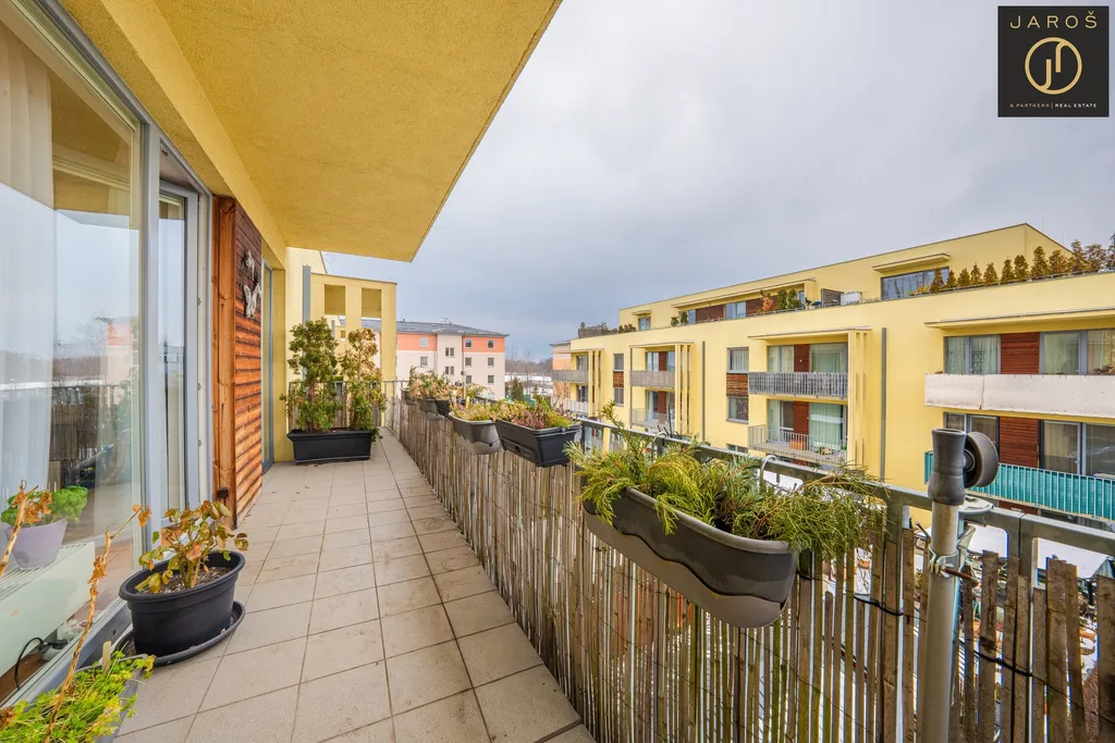 Celková užitná plocha bytu činí přibližně 60 m² a je doplněna o prostorný balkon o velikosti téměř 13 m², na který je přímý vstup jak z obývacího pokoje, tak z ložnice. Byt disponuje vstupní předsíní s dostatkem úložného prostoru, koupelnou s WC a světlým obývacím pokojem s kuchyňským koutem, který tvoří přirozené centrum celého bytu. Samostatná ložnice poskytuje klidné zázemí pro odpočinek a zároveň nabízí pohodlný vstup na balkon. K bytu náleží také sklep o velikosti 4,19 m².
