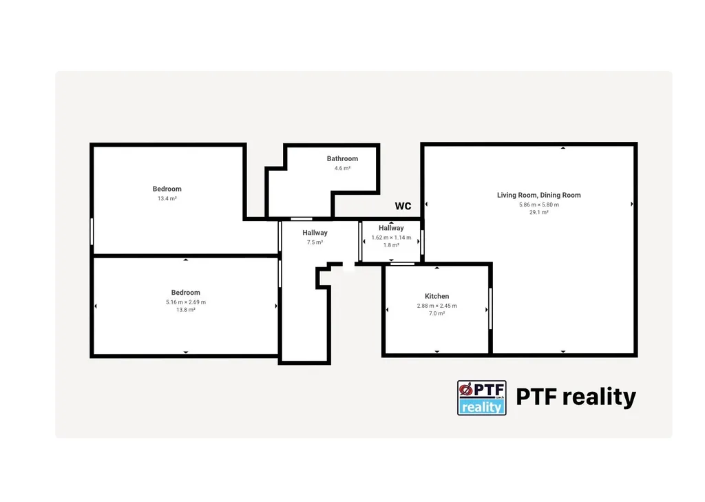 Uspořádání bytu je promyšlené — nic tu nepřebývá, všechno má své místo. Vyhovuje rodině stejně dobře jako páru, který chce mít každý svůj pokoj. informativní půdorys je k dispozici ve fotografiích. Projděte si byt v našem 3D skenu.
