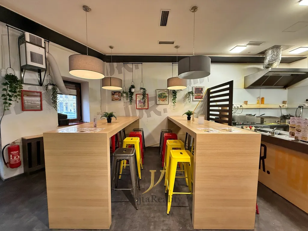 Prostory o rozloze 55m² do nynějška sloužily jako vyhledávaný podnik rychlého občerstvení, který měl strategicky výhodné místo v centru města. Nyní prostory nabízejí cca 15 míst k sezení, ale současný provozovatel si vybavení prostor odnese do nové provozovny. V letních měsících se nabízí možnost předzahrádky dalšími až 20 místy k sezení. Zachování stávajícího konceptu ovšem není podmínkou pronájmu. Prostor lze využít a přizpůsobit i pro jiné druhy podnikání.
