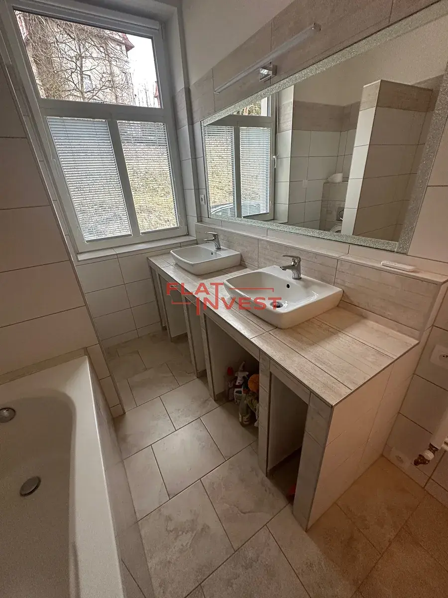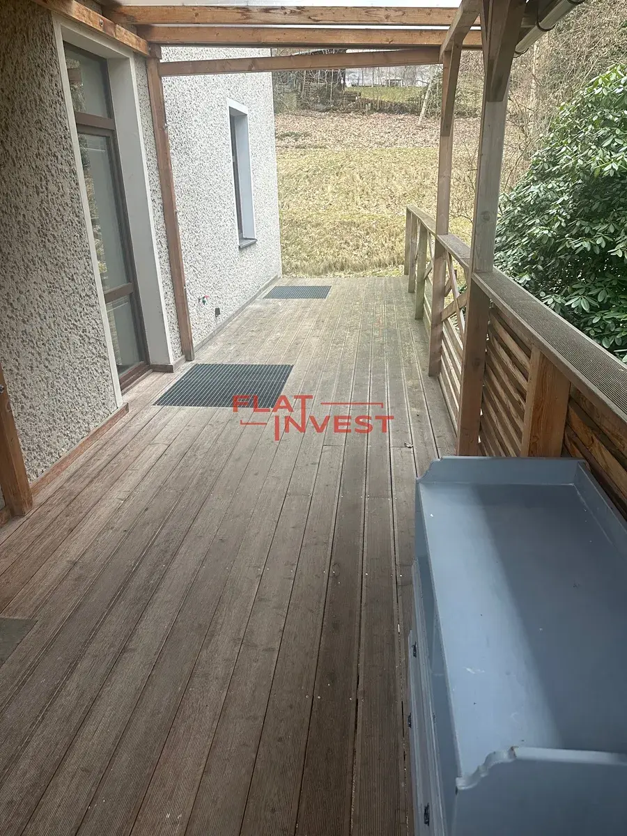 Nabízíme k pronájmu kompletně zrekonstruovaný byt 3+kk s terasou a zahradou k užívání. Nachází se nedaleko centra města s dobrou dostupností autem či MHD, kde zastávka autobusu je pouhé 2 minuty od domu. Parkování na zahradě přímo u domu a nebo je možné si pronajmout garáž ( 2.000,- Kč/ měsíc ). Topení je v bytě zajištěno krbovými kamny s výměníkem do všech pokojů a nebo je možné vytápět infra panely ve stropě na elektřinu.