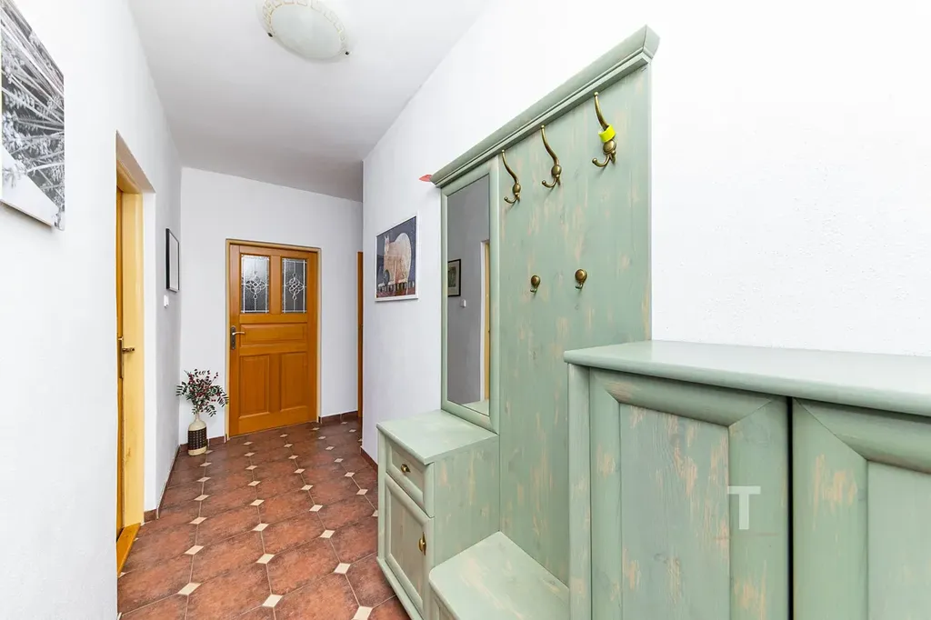 Dům je plně podsklepený, což poskytuje velkorysý úložný prostor, technické zázemí nebo možnost vybudování dílny či hobby místnosti. Nad celým domem se nachází prostorná půda s potenciálem půdní vestavby, která umožňuje výrazné rozšíření obytné části. Součástí je již vybudovaný balkon s příjemným výhledem do okolí.