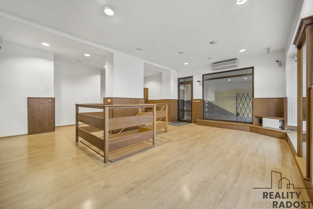 Prostory mají dvě velké výlohy do ulice a jednu boční výlohu.
