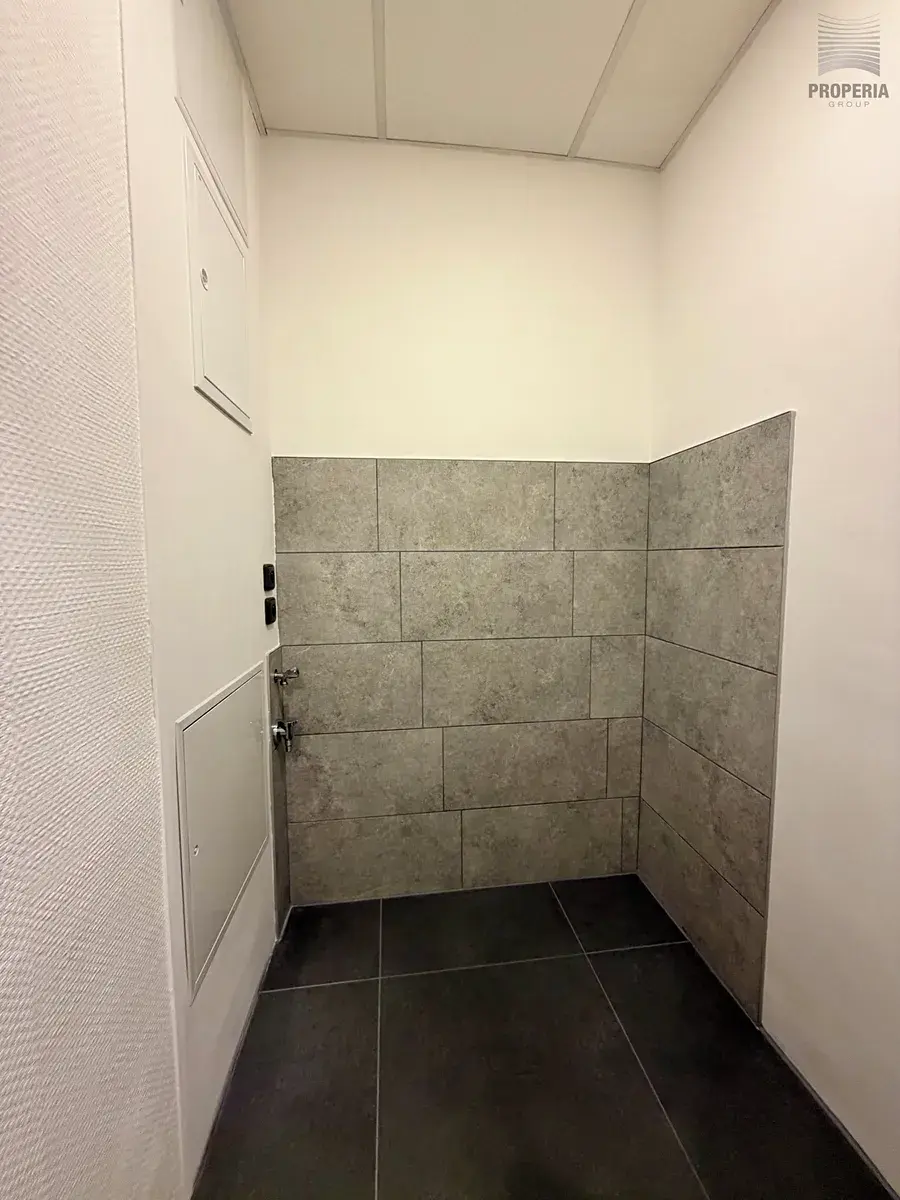 Prostorná koupelna se sprchovým koutem a toaletou. Místo pro pračku a sušičku je v šatně. Součástí bytu jsou i bezpečnostní vstupní dveře. K dispozici jsou 2 velké sklepy.