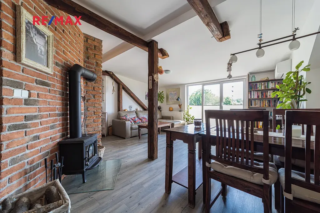 Exkluzivně nabízíme ke koupi atypický podkrovní byt na okraji města Šumperka s dispozicí 3+kk. Tento byt, resp celý půdní prostor, byl kompletně nově zbudován v roce 2011. Přestavba zahrnovala výměnu krovů, izolace, podlahy, kompletní instalace, mezibytové příčky, bytové příčky, okna, dveře, balkóny, střešní krytinu. Byt je plný velmi pozitivní energie a je velmi slunný, což lze korigovat zabudovanou klimatizací, kterou můžete rovněž v chladnějších dnech přitápět. Další příjemný zdroj tepla jsou vysoce výhřevná krbová kamna. Pro pohodlnou temperaci a vytápění je k dispozici ještě elektrokotel s teplovodním rozvodem. Byt samotný je uživatelsky velmi příjemný a má dobře řešenou dispozici, která nabízí mnoho úložných prostor jak na chodbách, tak v šatně. Dětský pokoj a obývací pokoj s balkónem jsou orientovány na jihozápad, nabízí krásné výhledy do přírody zalité sluncem. Kuchyně, ložnice a koupelna jsou orientovány do vnitrobloku na severovýchodní stranu.