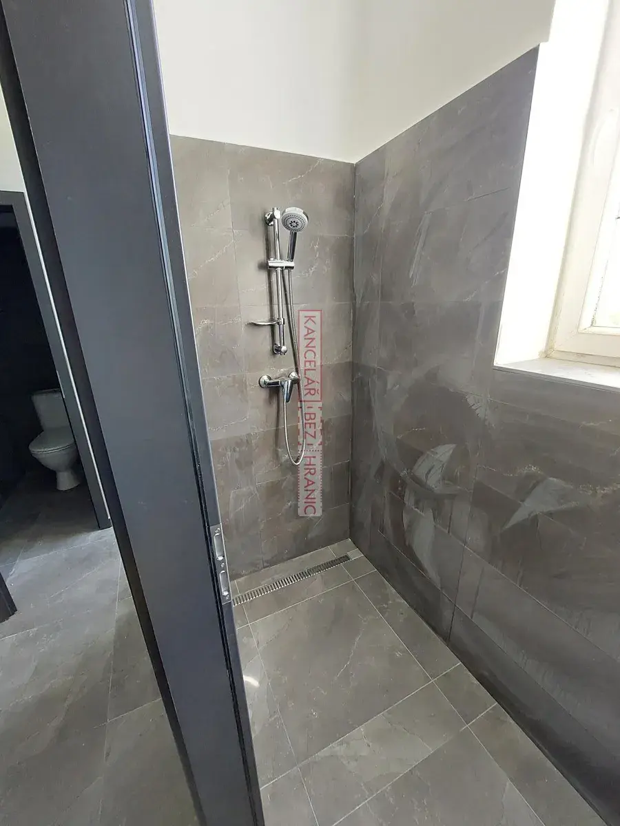 - Administrativní a technické zázemí: 11,9 x 9,4 m = 112 m (k dispozici kuchyňka, šatna, dvě toalety a sprcha)