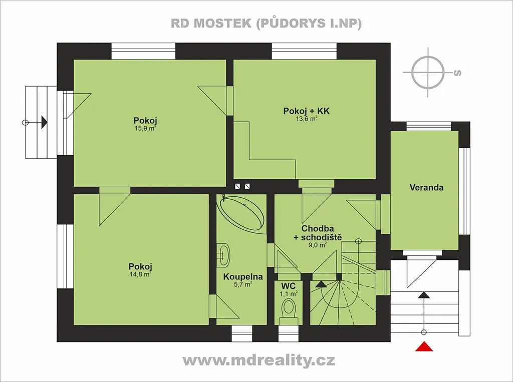 Ve výhradním zastoupení nabízíme k prodeji samostatně stojící rodinný dům s velkou zahradou v Mostku na Trutnovsku. Nemovitost je z roku 1935, v roce 1971 byly provedeny stavební úpravy podkroví a před 7 lety dům prošel částečnou modernizací. Celková výměra pozemku včetně zastavěných ploch je 1070 m2, součástí nemovitosti je garáž na pozemku, zděná kolna a dřevěná zahradní chatka. Dům tvoří přízemí, podkroví a částečné podsklepení s plochou 7 m2. Nosné konstrukce domu jsou zděné z pálených cihel, stropy dřevěné, krovy ve velmi dobrém stavu a krytina plechová. Nemovitost je napojena na inženýrské sítě (elektřina, obecní vodovod, kanalizace, plynová přípojka je zavedena na pozemek, objekt připojen není). Vytápění je elektrokotlem a kotlem na tuhá paliva do radiátorů, ohřev vody elektrickým bojlerem. Okna po výměně plastová. Dům se nachází v klidné části města, pozemek je mírně svažitý a celodenně osluněn. předností této nemovitosti je lokace v krásné krajině chráněného území podkrkonoší, například 8 km vzdálená přehrada Les Království a především snadná dostupnost Krkonoš. Cena pro jednání!