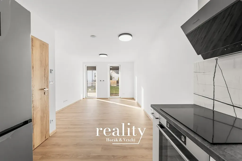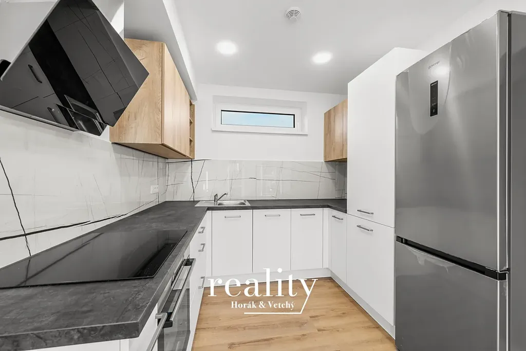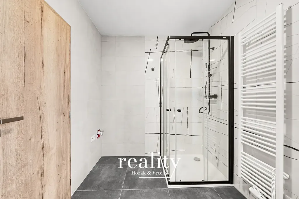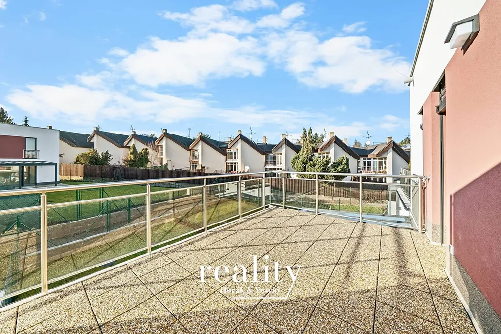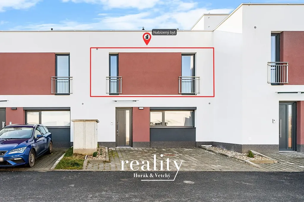 Byt o výměře 68 m² je situován v horním patře řadového rodinného domu a jedná se o novostavbu. Dispozice zahrnuje obývací část s kuchyňským koutem, ložnici, pokoj, koupelnu s toaletou a další samostatnou toaletu.