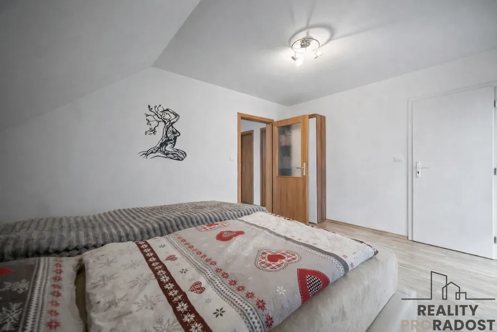 Hned po vstupu vás přivítá praktická předsíň, ze které se plynule dostanete do hlavní obytné části domu. Obývací pokoj propojený s kuchyní je přirozeným srdcem celého domu – místem, kde se potkává rodina, kde se vaří, povídá a tráví společný čas. V chladnějších dnech atmosféru dotváří krbová kamna, která dodají domu příjemné teplo i pocit skutečného domova. Přímý vstup na zahradu vybízí k letnímu posezení, ranní kávě nebo večernímu grilování.