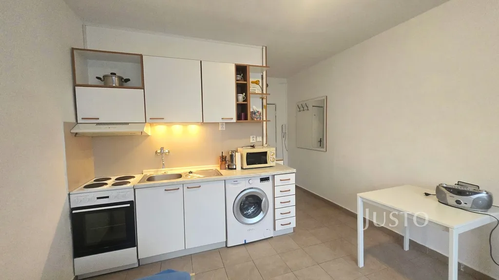 Byt je kompletně vybavený (vyjma lednice). Veškeré vybavení zůstává v bytě – postel, křeslo, stůl a další zařízení dle fotografií.