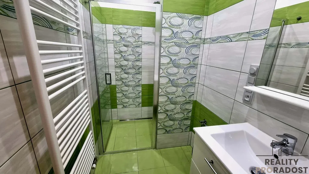 Koupelna disponuje sprchovým koutem a pračkou, toaleta je samostatná.