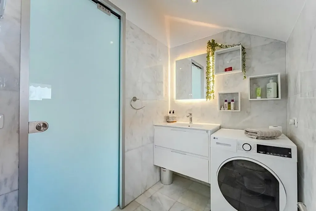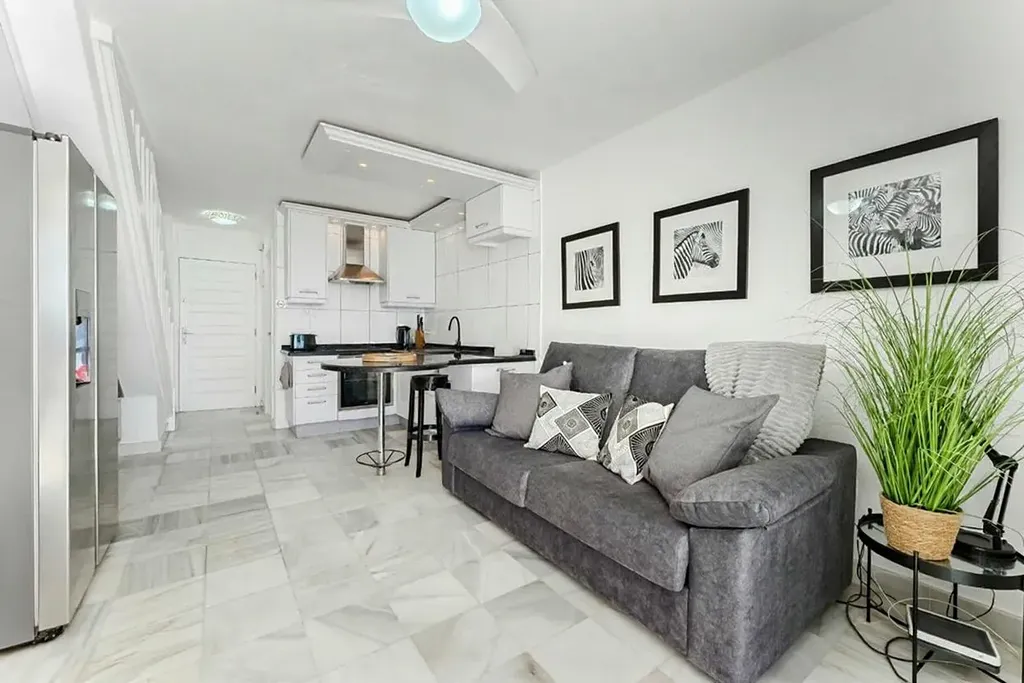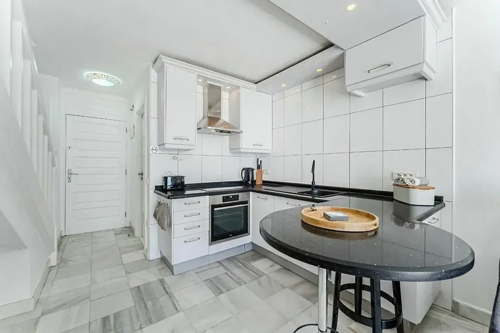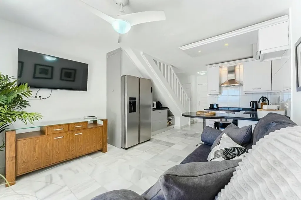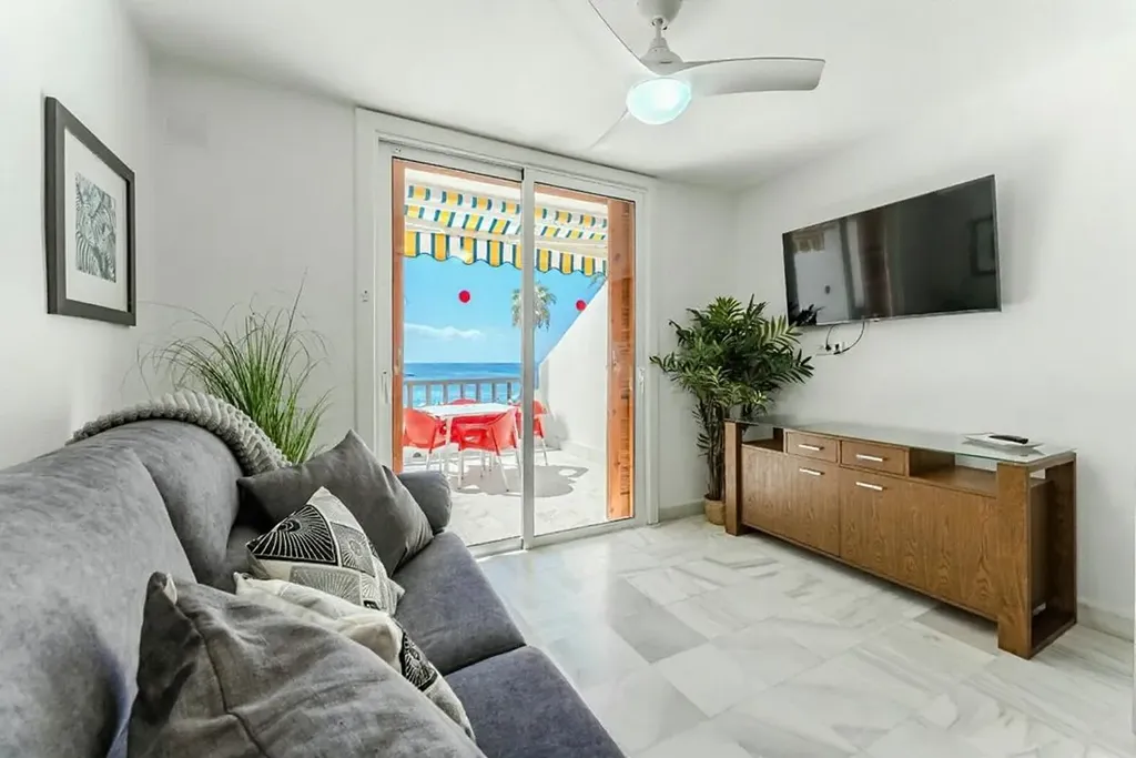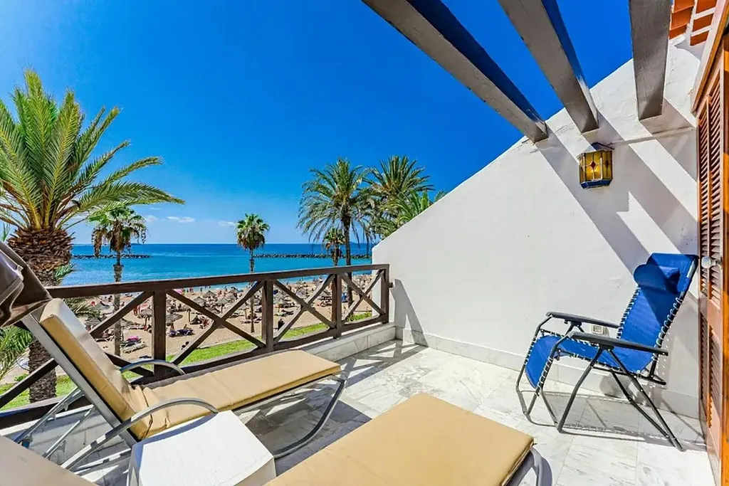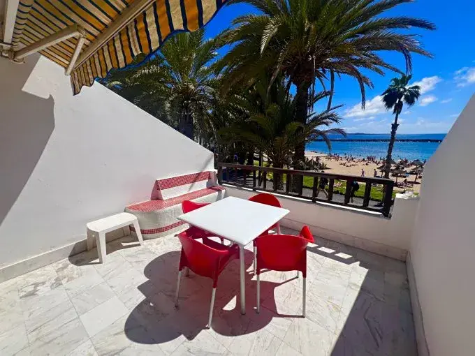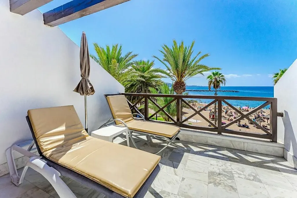K prodeji nabízíme výjimečný duplexový apartmán přímo u océanu, situovaný v exkluzivním a velmi vyhledávaném komplexu Parque Santiago III, v samotném srdci Playa de las Américas, na prestižní Golden Mile. Nemovitost nabízí přímý vstup na pláž, ničím nerušené otevřené výhledy na oceán a kompletní zázemí luxusního rekreačního resortu – velké bazény, dětský park, fitness centrum, restaurace, obchody i promenádu přímo před domem. Jedná se o jednu z nejlepších lokalit na jižním Tenerife. Apartmán je rozložený do dvou podlaží a má celkovou zastavěnou plochu 73 m² , doplněnou o dvě terasy. Vstupní podlaží nabízí obývací prostor s otevřenou kuchyní, samostatnou toaletu a terasu o velikosti 16 m² s přímým výhledem na oceán a pláž. Horní podlaží tvoří prostorná dvoulůžková ložnice s vestavěnými skříněmi, koupelna se sprchovým koutem a druhá terasa o velikosti 9 m² s panoramatickým výhledem na oceán a pobřežní promenádu. Nemovitost prošla nedávnou rekonstrukcí a prodává se kompletně zařízená, připravená k okamžitému užívání.