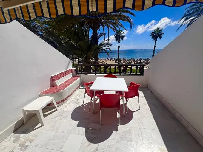 Přímá poloha u oceánu a vstup na pláž, prestižní lokalita Golden Mile – Playa de las Américas, duplexový apartmán / penthouse, rozloha 73 m² , 1 ložnice, 2 koupelny, 2 terasy (16 m² + 9 m²), otevřené výhledy na oceán a pláž, jižní orientace, nedávno zrekonstruováno, kompletně zařízeno, velké komunitní bazény, fitness, restaurace, obchody, poplatky za komunitu: 713 € / čtvrtletí, IBI: 321 € / rok