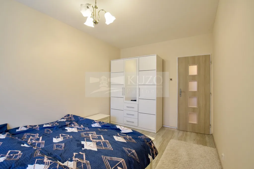 Dispozice bytu nabízí obývací pokoj, dvě samostatné ložnice a oddělenou kuchyni. Kuchyně je vybavena mikrovlnnou troubou, lednicí, pračkou a sporákem s digestoří. Koupelna je vybavena vanou a byt poskytuje praktické a funkční uspořádání místností s dostatkem prostoru. Součástí bytu je sklepní kóje a další úložná komora.
