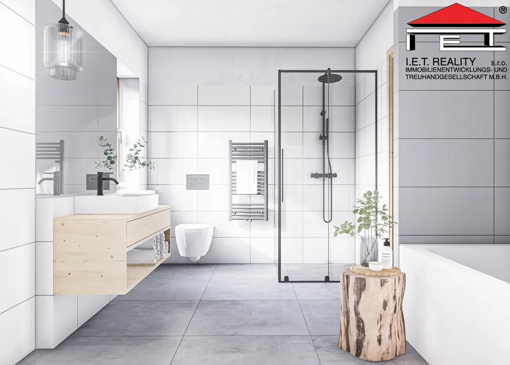 Ve 2.NP se nachází dvě ložnice a velká koupelna s vanou, sprchovým koutem a dvěma umyvadly. Před chatou bude velká parkovací plocha s 6 dobíjecími stanicemi pro elektromobily.