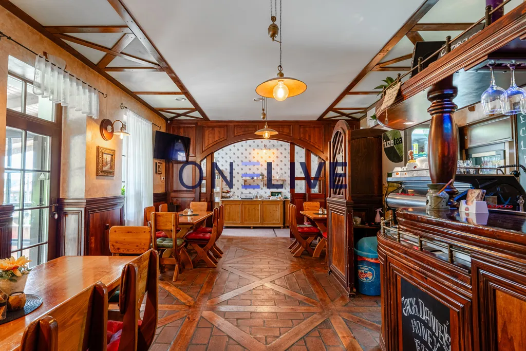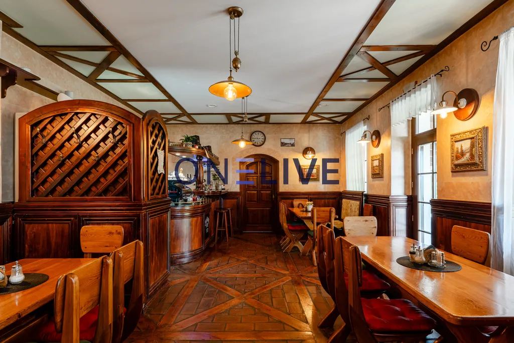 Součástí hotelu je restaurace s kapacitou 24 míst, vybavená masivním nábytkem a barem z dubového dřeva.