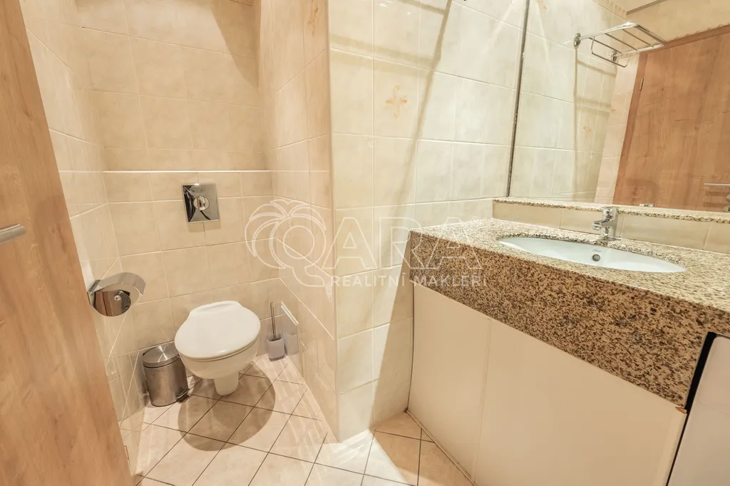 Byt je ve velmi dobrém stavu a má praktické uspořádání – menší rohová kuchyň s barovým pultem je propojená s obývacím pokojem. Dále je zde chodba ze které se dostanete do koupelny se sprchovým koutem a WC. Byt je připravený na bydlení či pronájem, bez nutnosti investic. Velkou výhodou je klimatizace, podlahové vytápění v koupelně a vybavení bytu (viz. fotografie) které je součástí prodeje.
