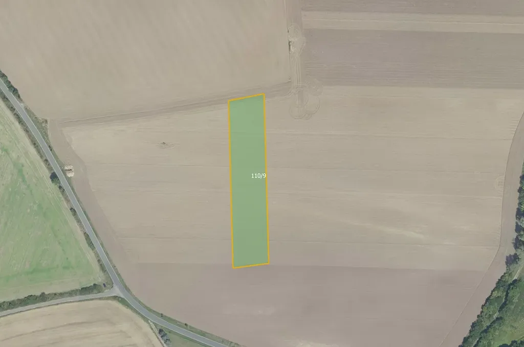 Parcela č. 110/9 je zapsána na listu vlastnictví č. 19 a nachází se ve výlučném vlastnictví prodávajícího.