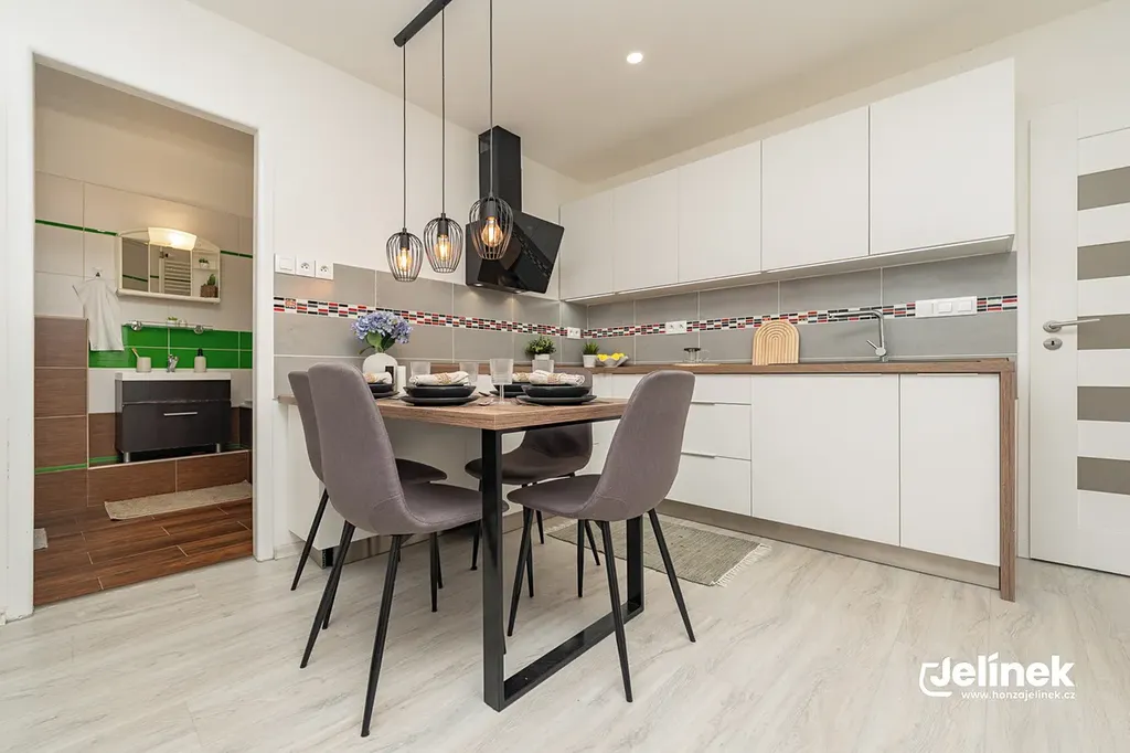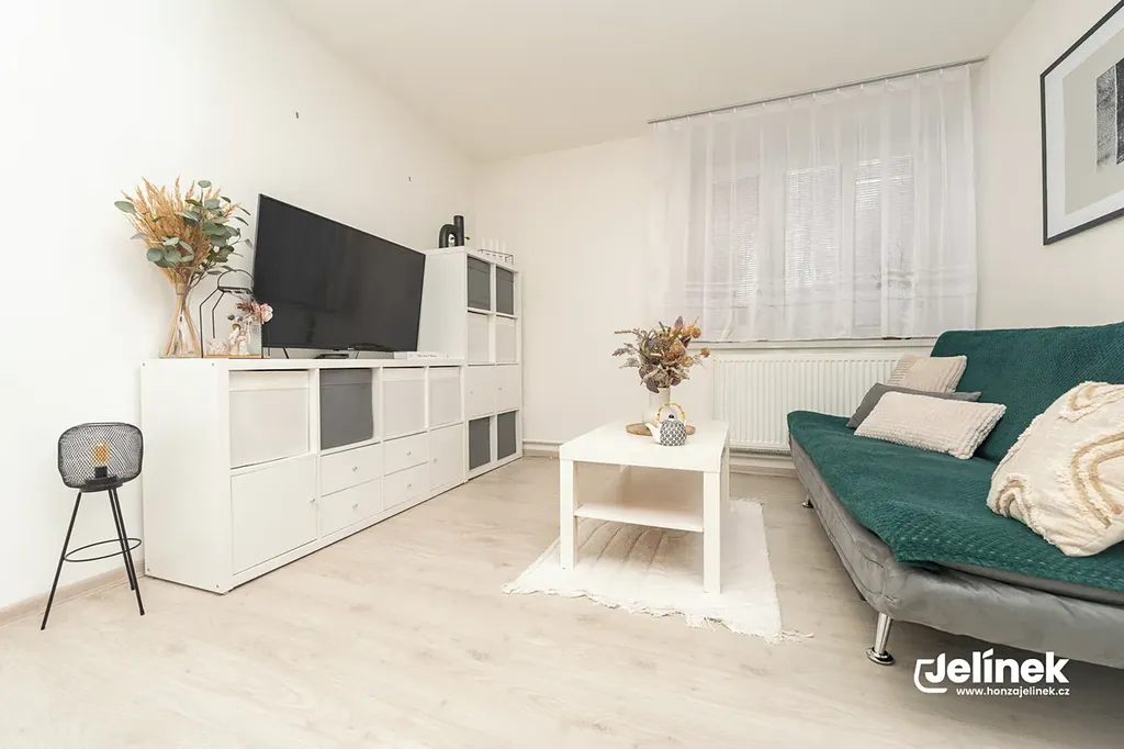 Byt o ploše cca 50 m² prošel před 4 lety celkovou rekonstrukcí. Interiér je moderní, světlý (orientace JV) a velmi prakticky řešený. Najdete zde kuchyni s jídelním koutem a vestavnými spotřebiči, útulný obývací pokoj a menší pokoj, který můžete využít jako ložnici. Chytře vyřešenou chodbu, kde je dostatek místa na ošacení, ukončenou komorou sloužící jako místo pro pračku se sušičku a další potřebné věci. Vytápění zajišťuje vlastní plynový kotel.