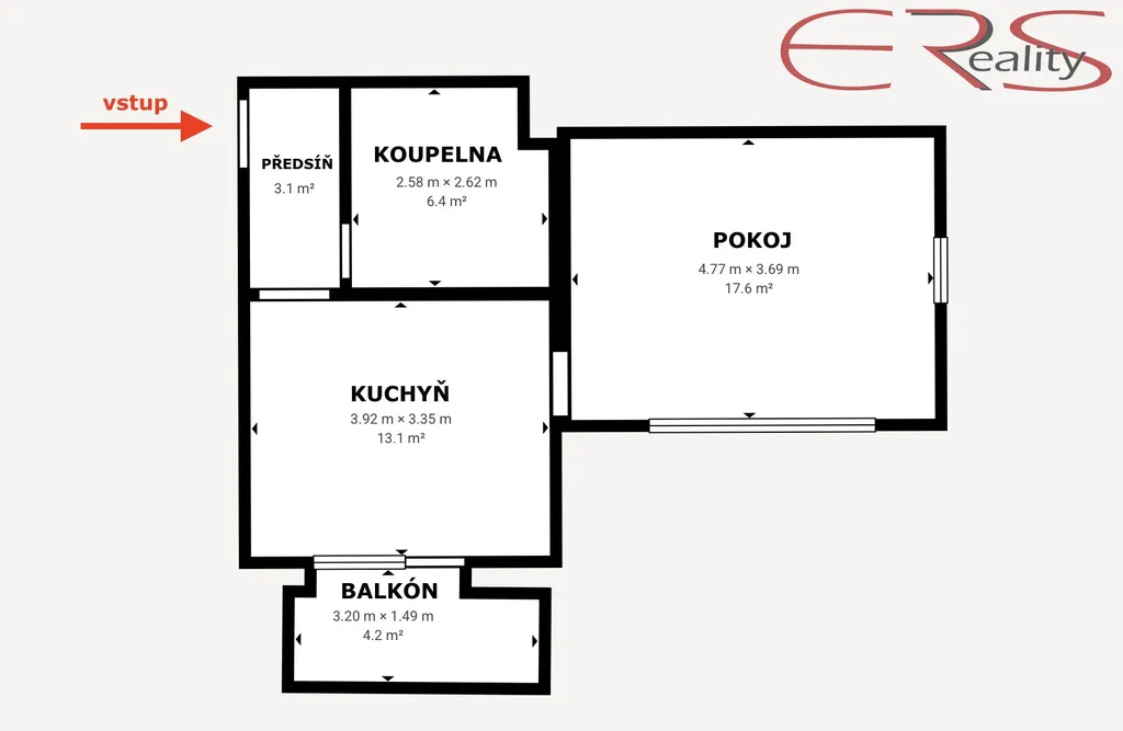 Dispozice 1+1 – ideální pro jednoho člověka, který má rád prostor, nebo pro pár, který se ještě pořád má rád.