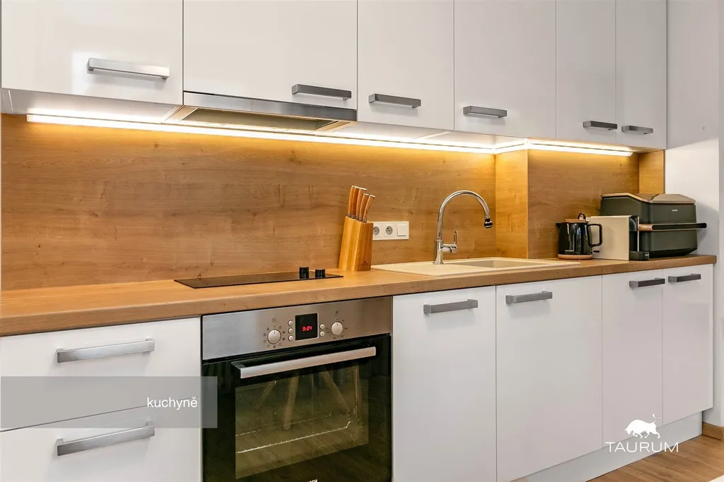 V roce 2021 prošel byt kompletní rekonstrukcí vč. zásadní změny dispozice, kdy se z původního 2+1 vytvořil moderní, otevřený a velmi příjemný prostor. Praktická a dostatečně velká je vstupní předsíň, moderní koupelna se sprchovým koutem a samostatnou toaletou. Promyšlené jsou také další detaily, jako např. prostor pro úschovy pračky či zabudovaná lednice s mrazákem v prostoru kuchyňské linky.