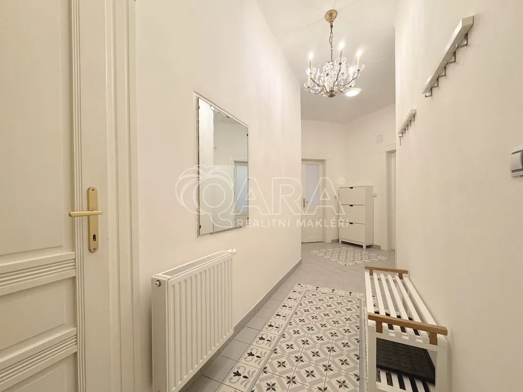 Zprostředkuji Vám pronájem prostorného a částečně zařízeného bytu dispozice 2+1, o výměře 90 m2, na pražských Vinohradech, v domě na rohu ulic Kolínská a Vinohradská. Tento krásný byt prošel před 3 lety kompletní, ale citlivou rekonstrukcí, původní prvky bytu tak zůstaly zachovány. Nově je také byt vybaven klimatizací. V bytě oceníte prostornou kuchyni, s krásnou kvalitní kuchyňskou linkou ve vyšším standardu, vč. vestavných spotřebičů. Dominantou bytu je rohový obývací pokoj, přístupný jak z kuchyně tak z ložnice. Ložnice je prostorná a kompletně vybavena nábytkem. Z ložnice je vstup na malý balkón. Oba pokoje mají dubovou parketovou podlahu. V koupelně je prostorný sprchový kout, WC s malým umyvadlem je umístěno samostatně. Součástí bytu je technická místnost s pračkou. Na vstupní předsíň navazuje prostorná hala, vybavená šatní skříní a botníkem. Vytápění a ohřev teplé vody v bytě zajišťuje kondenzační plynový kotel. Byt je situován ve 2. patře domu s výtahem a má okna jak do ulice Kolínské, tak i Vinohradské. V místě výborná dopravní dostupnost: zastávka tramvaje Radhošťská 1 minuta chůze, stanice metra Jiřího z Poděbrad či Flora (trasa A) cca 7 minut pěšky. Současně dobrá občanská vybavenost: OC Flora, kino, obchody, restaurace, fitness, plavecký bazén Olšanka v docházkové vzdálenosti. Na revitalizovaném náměstí Jiřího z Poděbrad možno navštívit sezonní trhy či kulturní akce. Byt je určen jednotlivci či páru k dlouhodobému pronájmu (min. 12 měsíců). Měsíční náklady: nájem + záloha na služby 1.500 Kč/osoba + přepis plynu a el. energie na nájemce. Jistota + odměna zprostředkovatele. NELZE na spolubydlení či krátkodobé pronájmy typu airbnb.