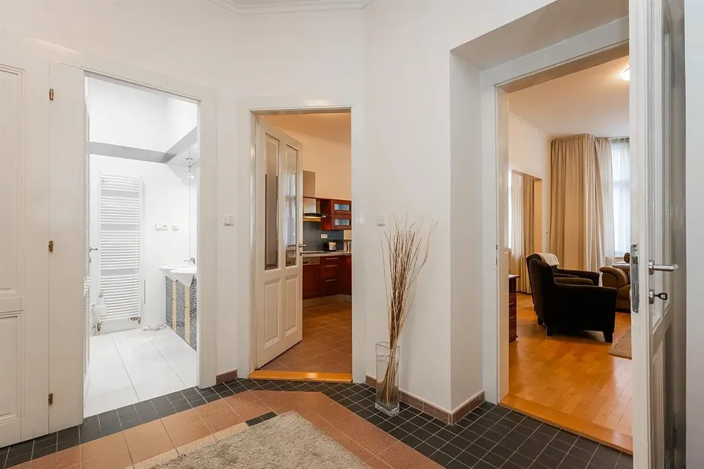 Zařízený prostorný byt 3+1 (2 ložnice, 1 koupelna) s balkonem, je situovaný ve 2.patře rezidenční budovy s výtahem, v lukrativní lokalitě na Praze 1 Staré Město. Interiér bytu je plně zařízený. Dispozičně byt nabízí prostornou vstupní halu, světlý obývací pokoj, samostatnou vybavenou kuchyň s jídelním prostorem, dvě oddělené ložnice jedna z ložnic se vstupem do komory a na balkon orientovaným do vnitrobloku, komfortní koupelnu s masážní vanou a toaletou, další oddělenou toaletu.