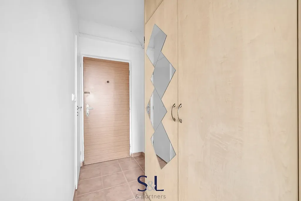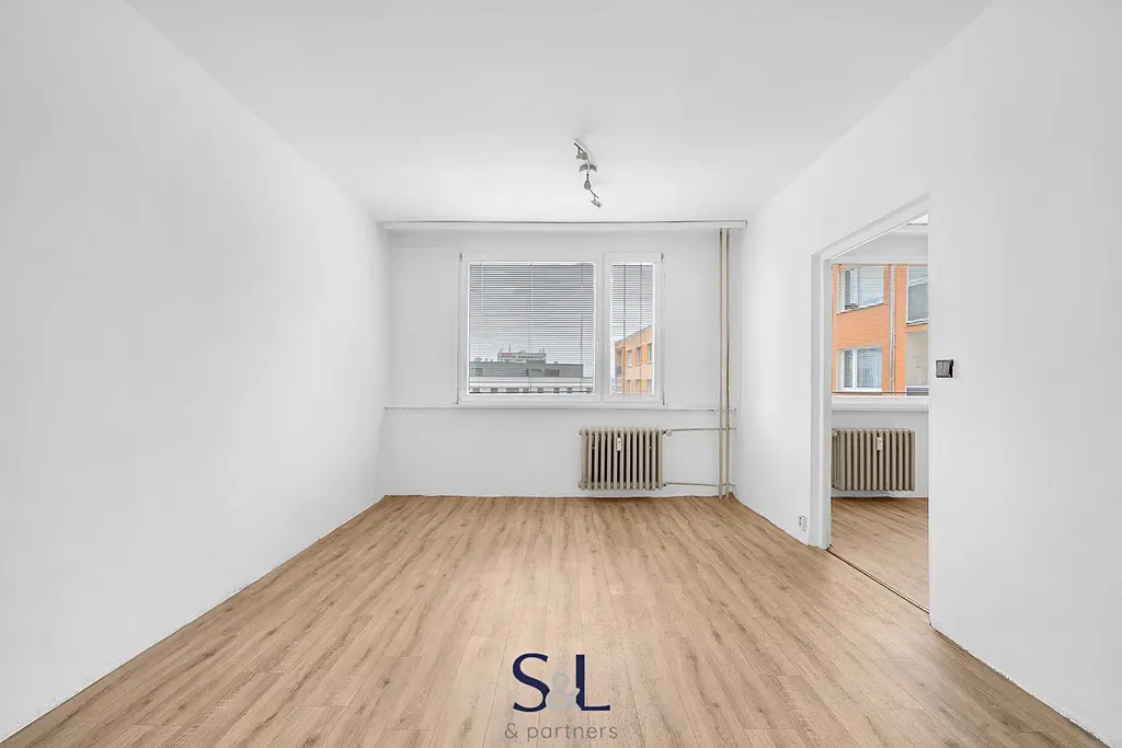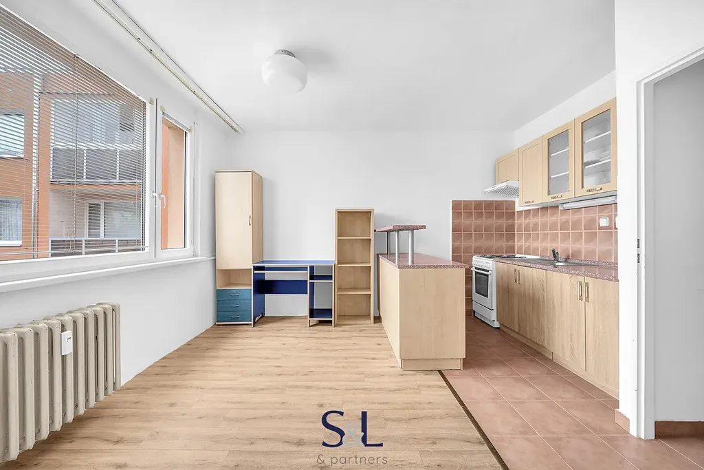 Dispozice bytu je prakticky řešena. Ze vstupní chodby se vchází do koupelny s toaletou, dále do kuchyně s jídelním či obývacím koutem. Samostatná místnost nabízí dostatek prostoru pro ložnici, případně kombinaci s pracovním koutem. Součástí bytu je podíl na balkoně v mezipatře a sklepní kóje.