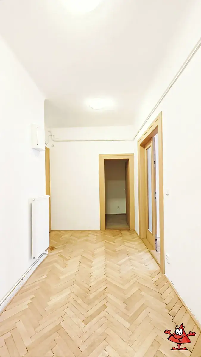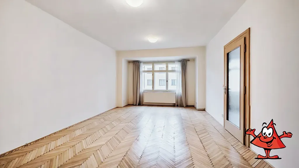 Pronájem neobvykle prostorného světlého bytu o dispozici 2+kk se šatnou ve 4. patře cihlové budovy s výtahem, Praha 7 - Holešovice, ulice Schnirchova. Byt se skládá ze dvou velkých průchozích místností (se samostatnými vchody), vstupní haly, komory/šatny a koupelny s toaletou. V kuchyňské části je kuchyňská linka se spotřebiči (lednice, mrazák, myčka, sklokeramická deska, el. trouba), podlahy z části vinylové, z části renovované parkety, z části dlažba, okna dřevěná.