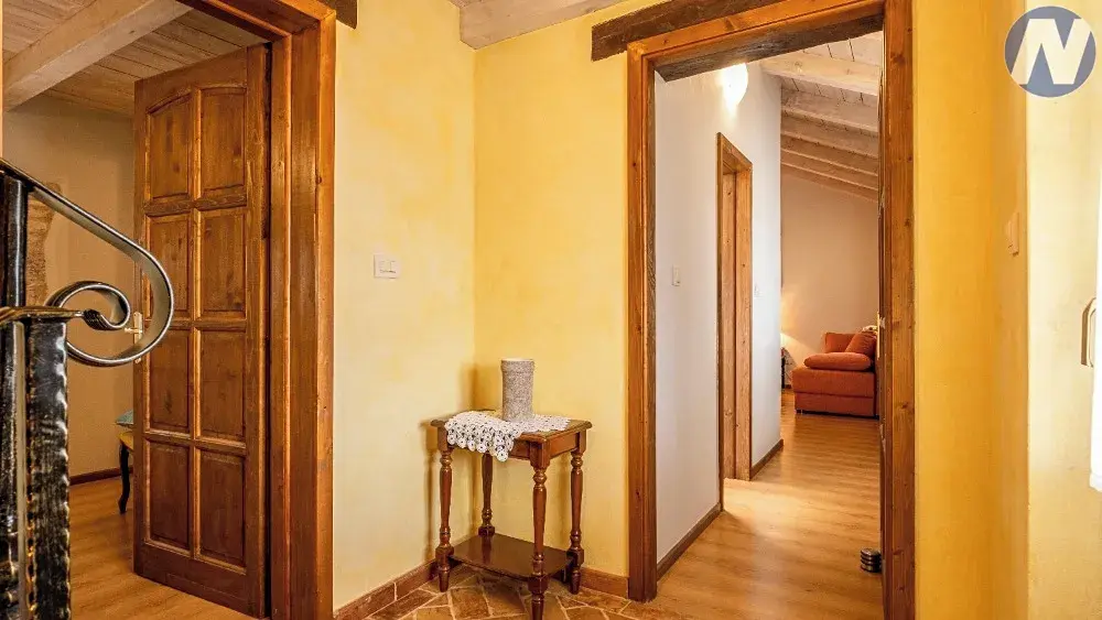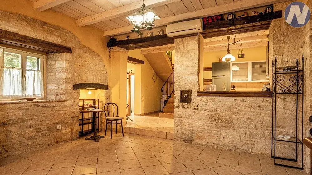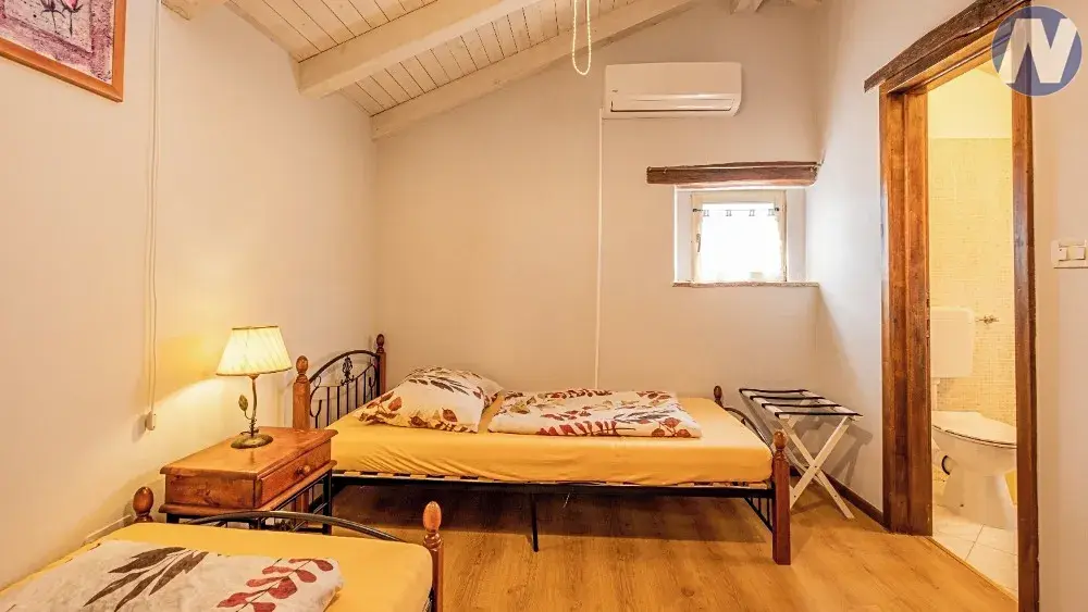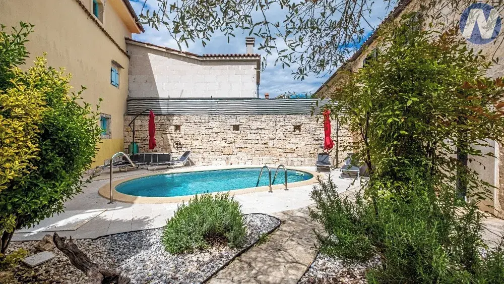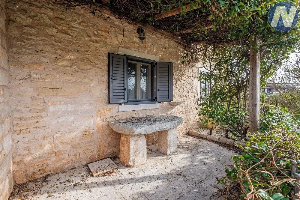 Tento unikátní objekt se skládá ze dvou samostatných budov, autentických kamenných domů, které byly kompletně zrekonstruovány a vybaveny velkým důrazem na detail. Každý dům má vlastní vchod, zatímco mají společný prostorný a dobře navržený venkovní prostor. Najdete zde bazén s moderní solární sprchou, prostor pro opalování, idylická místa pro posezení a socializaci a krytou terasu s grilem až pro 12 osob, ideální pro letní posezení. Vstup do dvora zdobí olivovníky a na pozemku je zabezpečené soukromé parkoviště pro 4 auta.