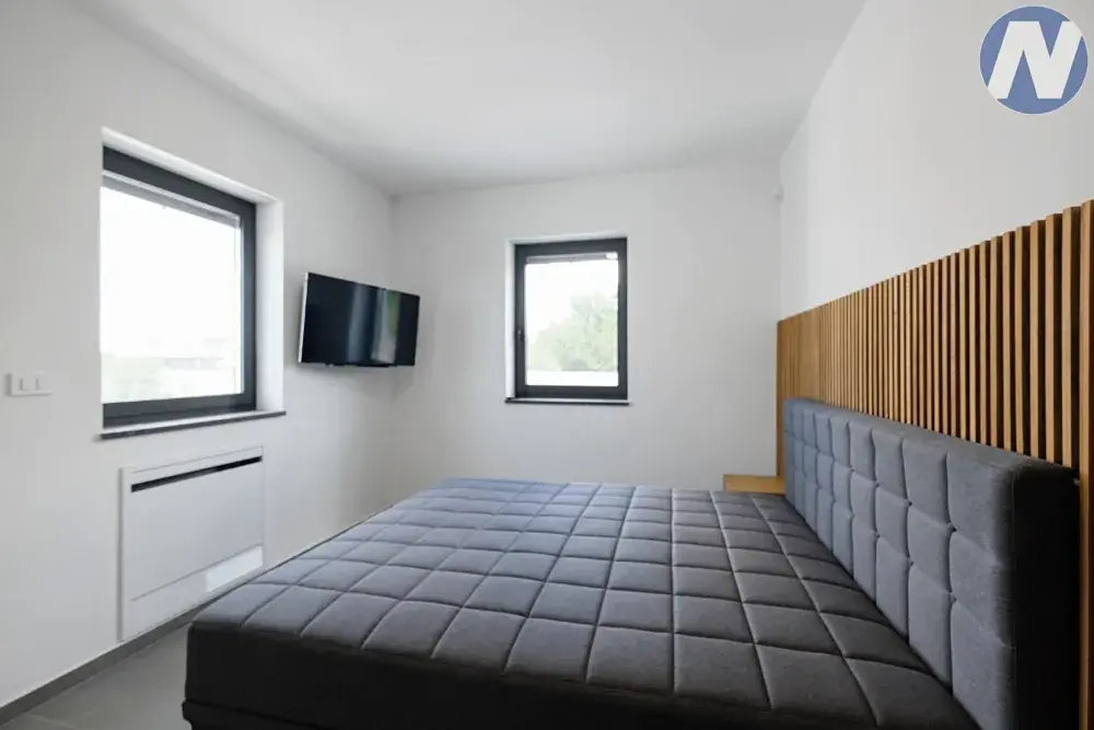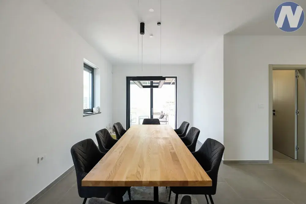 Dům se nachází v lokalitě půvabného městečka Svetvinčenat. Dům je nově postaven v moderním stavebním stylu s velkými prosklenými stěnami, kterými proniká hojné světlo. Skládá se ze vstupní haly, kuchyně, jídelny, toalety, technické místnosti, obývacího pokoje s krbem a přístupu na venkovní terasu, kde je venkovní bazén se sluneční terasou pro relaxaci a zábavu. Vnitřní schodiště zároveň spojuje 1. patro, kde jsou 4 prostorné a světlé ložnice se 4 moderními a plně vybavenými koupelnami.