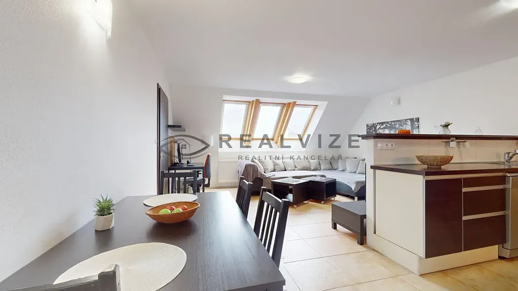 Nabízíme k prodeji velmi pěkný světlý byt 3+kk (cca 66 m2) s terasou (cca 7 m2) orientovanou do vnitrobloku s krásným výhledem na Černou věž a s parkovacím stáním v uzavřeném dvoře. Byt se nachází ve 4. patře (5) zděného bytového domu bez výtahu. Stáří bytu je cca 15 let a je ve velmi pěkném udržovaném stavu. Nabízí se s vybavením, které je vidět na fotkách, ale po dohodě s budoucím kupujícím je možné byt vyklidit. V ložnici je vestavěná prostorná skříň. Střešní okna do ulice jsou dřevěná zn. Velux, v pokoji s terasou jsou okna plastová. Koupelna disponuje rohovou vanou a sprchovým koutem, WC je samostatné. Byt je vytápěn pomocí radiátorů přes centrální plynový kotel pro celý dům, který zajišťuje rovněž ohřev vody. V koupelně je navíc podlahové topení (elektrický rošt) s vlastním ovladačem. Do budoucna se řeší možnost napojení na teplárnu. K dispozici je společný sklep a kolárna.