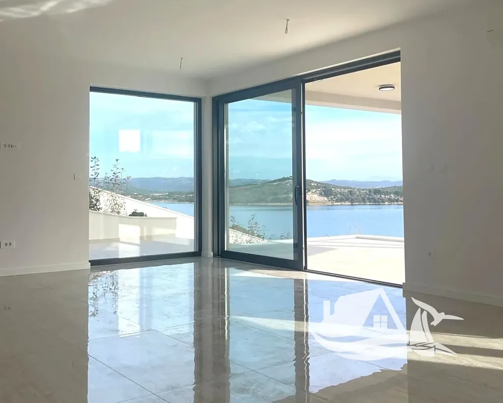 Na vyvýšeném místě pouhých 150 metrů od pláže nabízíme samostatně stojící luxusní vilu s bazénem a garáží, která poskytuje dechberoucí výhled na moře a okolní krajinu. Tato moderní novostavba je ideální pro celoroční bydlení i jako reprezentativní rekreační sídlo s výrazným investičním potenciálem.