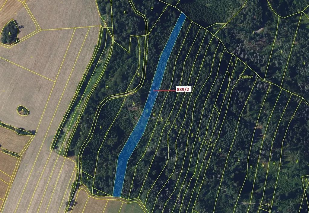 Lesní pozemek o výměře 5465 m2, parcelní číslo 839/2, podíl 1/1, katastrální území Žďárec, obec Žďárec, obec s rozšířenou působností Tišnov, okres Brno-venkov, Jihomoravský kraj.