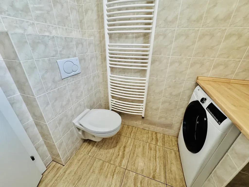 V Koupelně je rohová vana, umyvadlo, topný žebřík, zrcadlo, je zde i toaleta. Koupelna má okno, je zde dostatek denního světla a možnost větrání.