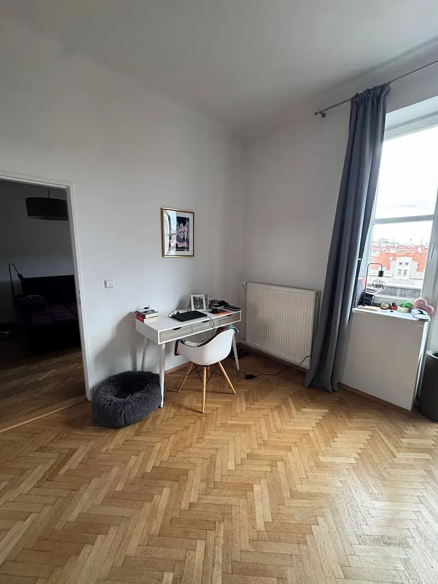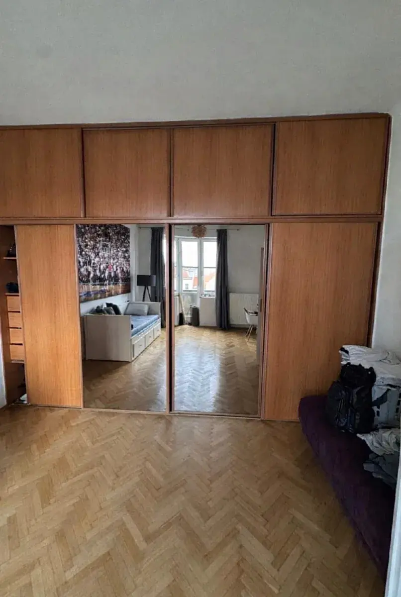 V bytě zůstává vestavěná skříň se zrcadlem, jinak se nabízí nezařízený. Lze se domluvit se současným nájemcem na převzetí části nábytku.
