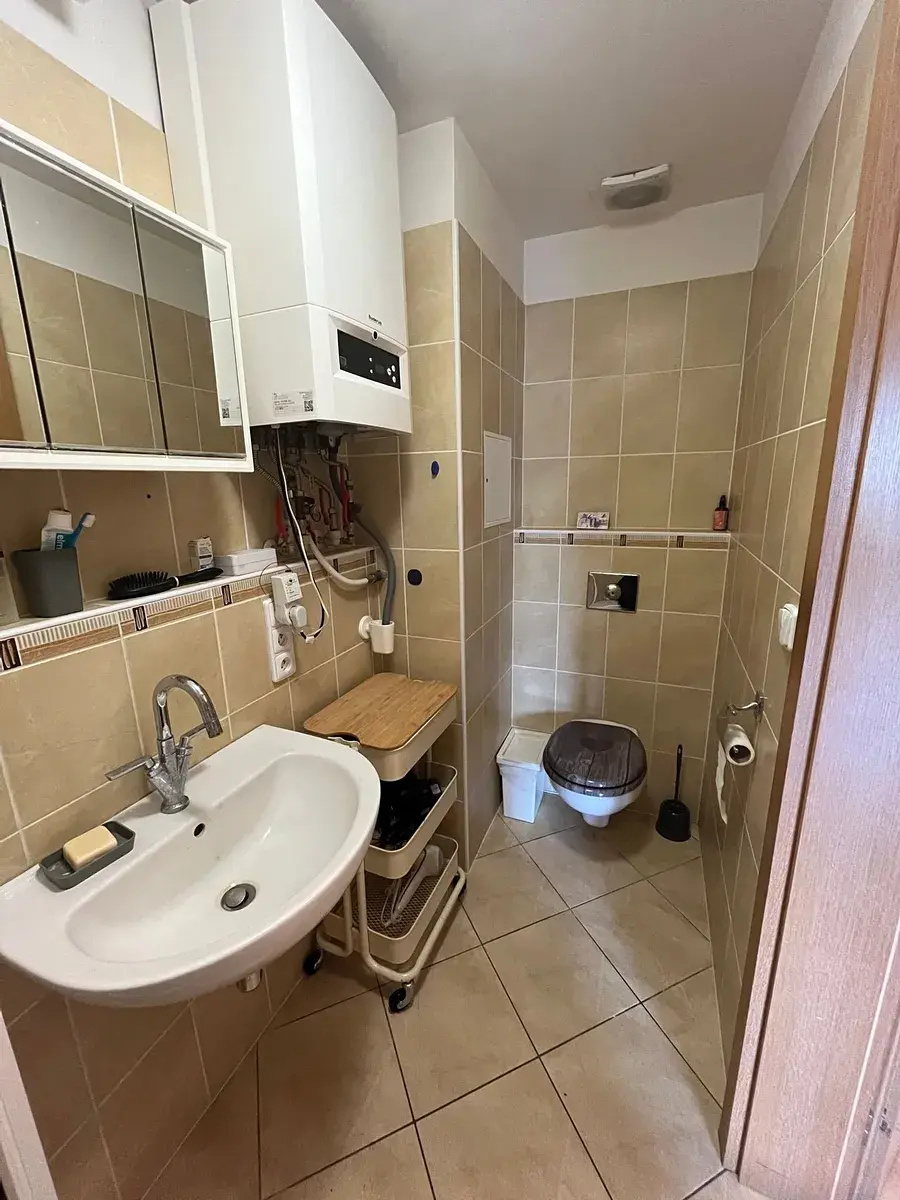 Pronájem velice pěkného a prostorného bytu 1+kk v OV, Brno - Komín, ul. Podveská. Byt se nachází v 2.np/3 cihlového domu ve velice dobrém stavu. CP bytu činí 43 m2 + 8 m2 prostorný balkón s krásným a nerušeným výhledem do okolí. Byt je kompletně vybavený včetně kuchyňské linky se všemi potřebnými spotřebiči a včetně pračky. Je velice prostorný vhodný pro 1-2 osoby ke startovacímu bydlení. Majitel bytu požaduje nekuřáky bez zvířat, dále jednu vratnou kauci ve výši nájmu a smlouvu na 1 rok s možností prodloužení. Dále k tomuto bytu náleží zděný prostorný sklep a parkovací stání přímo před domem.