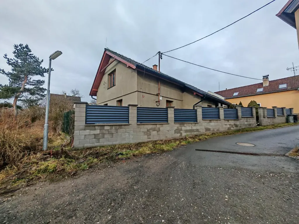 Před domem je nový plot s elektrickou bránou na dálkové ovládání (DO), která je vybavena kolejnicovým pojezdem, připraveným k zapojení do elektrického systému, který je již zakoupen. Na zahradě je domek na zahradní techniku, nebo volnočasové příslušenství.