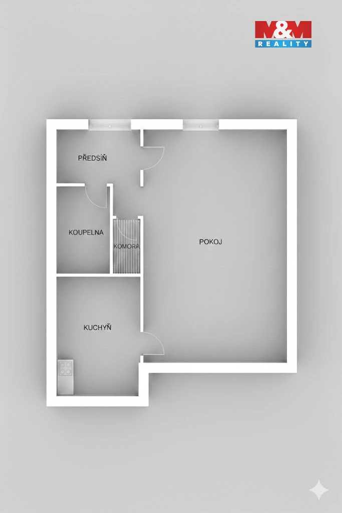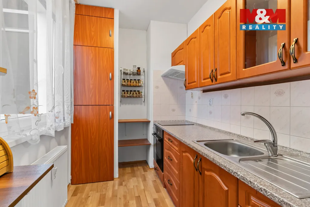Součástí bytu je také praktická komora s připojením na pračku, kam se pohodlně vejde i sušička a další potřebné věci.