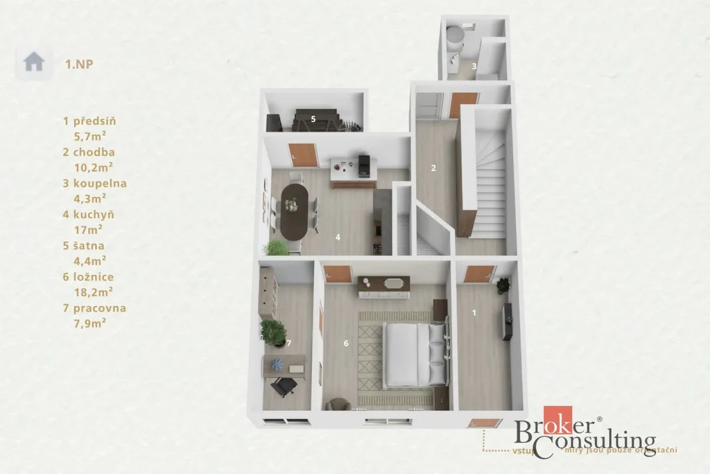 Dům nabízí výjimečnou kombinaci: tradiční stavbu z meziválečného období, dvě plnohodnotná patra, půdu s potenciálem vestavby a garáž na vlastním pozemku. Pokud hledáte nemovitost, kde se dá vytvořit moderní bydlení s dlouhodobou hodnotou, tohle je velmi zajímavá příležitost.