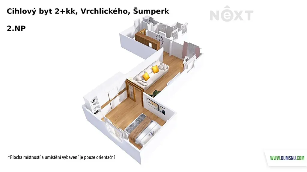 Nabízíme k prodeji velmi příjemný byt 2+kk o velikosti 50 m2, umístěný ve 2. NP cihlového domu v