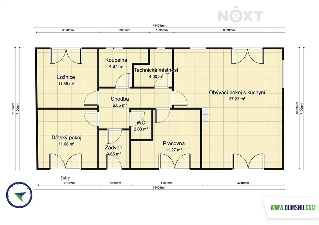 Samotný dům má dispozici 4+kk a užitnou plochu 94 m2. Z obývacího pokoje s kuchyní, který tvoří srdce