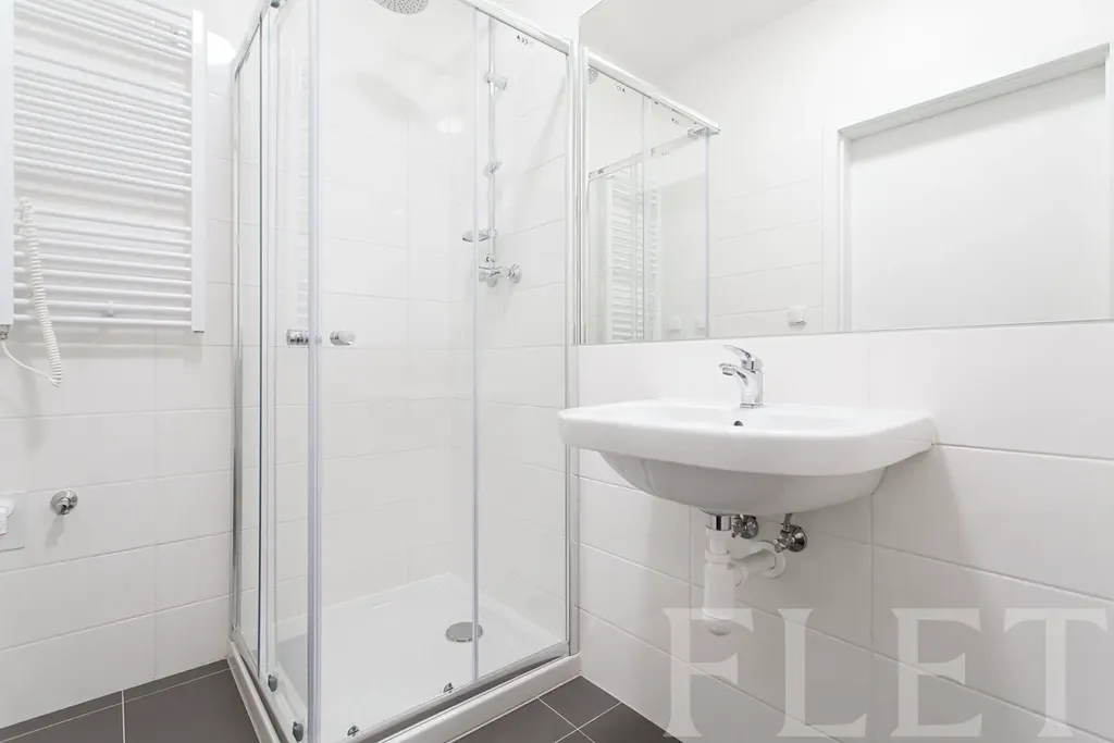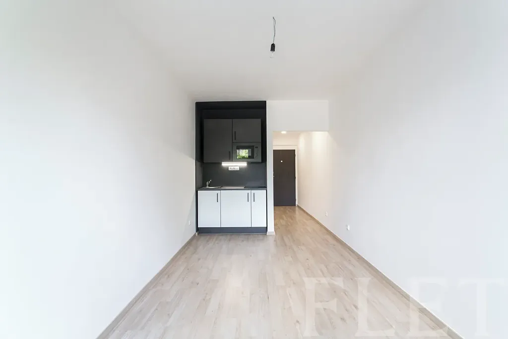 Jednotka je prakticky řešené 1+kk – vstupní chodba, koupelna se sprchovým koutem a WC a světlá obytná místnost s kuchyňským koutem, prostorem pro spaní i posezení. Díky neutrálním barvám a modernímu provedení působí vzdušně a je připravená k okamžitému užívání.