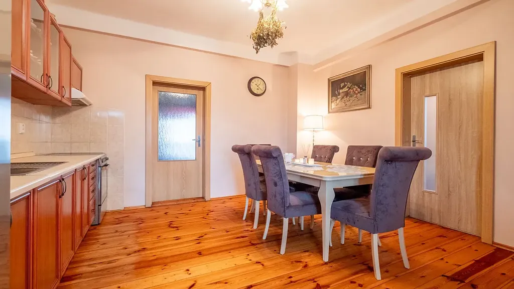 V přízemí je bytová jednotka 2+1 o ploše 69. V 1.NP a 2.NP jsou vždy dvě bytové jednotky jednotka o dispozici 2+1 s balkónem o celkové ploše 72 m2 a bytová jednotka o dispozici 1+1 s pavlačí o celkové ploše 42 m2. Jednotlivé byty mají své měřiče energií. Některé byty jsou trvale pronajaty.